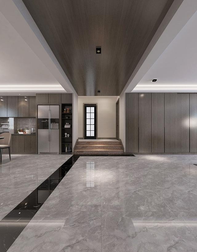 软拆沙发也搭配的米色,这是过道区域,它好像样板房的精美,以至能够说是有过之而无不及,一个“走的典礼感”。