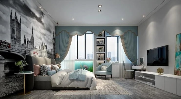 以上绿地城小区323平米四居室的现代气概设想案例,既容易清洗,卧室是我们歇息的处所,半包的拆修体例拆本年最风行的拆修气概?